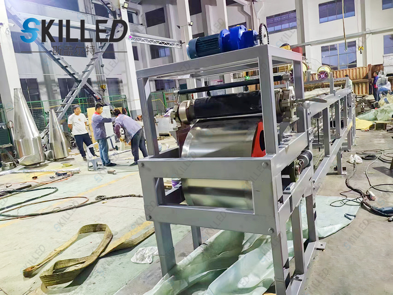 该机由液体变固体粒状,主要是通过造粒模头造粒,采用回转式钢带连续进行,通过喷淋水冷却定型。